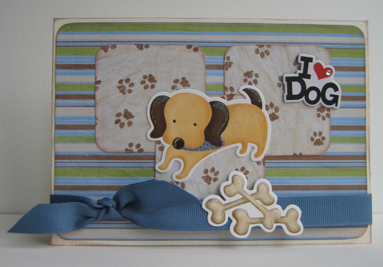 recipient very much in mind! The stickers are from a wonderful pack I bought some time ago from the Pound Shop - I like the bit of bling on the dog collar and heart! The ribbon is from my stash (I'm always amazed that I can match ribbon colour to the papers I've picked! Then again, I do have quite a lot of ribbon, so I shouldn't be that amazed!)